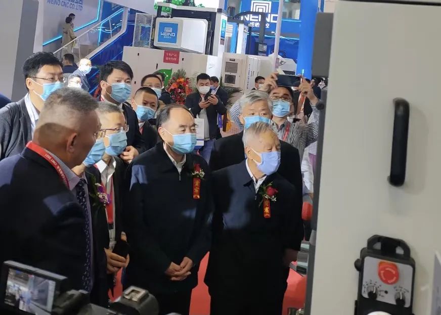 上午10時(shí),中國(guó)機(jī)床工具工業(yè)協(xié)會(huì)執(zhí)行副理事長(zhǎng)兼秘書長(zhǎng)王黎明、中國(guó)機(jī)床工具工業(yè)協(xié)會(huì)監(jiān)事長(zhǎng)王旭陪同原教育部部長(zhǎng)、中國(guó)工程院院長(zhǎng)周濟(jì),原機(jī)械工業(yè)部副部長(zhǎng)、國(guó)務(wù)院派駐國(guó)有重點(diǎn)大型企業(yè)監(jiān)事會(huì)原主席賈成炳等一行來到杭機(jī)展臺(tái)前,杭機(jī)股份董事長(zhǎng)孫益民、總經(jīng)理董凱夫向各位貴賓匯報(bào)了杭機(jī)在解決航發(fā)葉片加工等卡脖子問題上取得的成果,目前這一成果已批量提供給航發(fā)用戶。周濟(jì)院長(zhǎng)長(zhǎng)期致力于機(jī)械設(shè)計(jì)、數(shù)控技術(shù)與智能制造的教學(xué)和研究工作,作為行業(yè)的專家,他耐心詢問杭機(jī)的發(fā)展現(xiàn)狀和產(chǎn)品結(jié)構(gòu)。賈副部長(zhǎng)饒有興致地走近五軸數(shù)控強(qiáng)力成型磨床,近距離觀察機(jī)床內(nèi)部結(jié)構(gòu),孫益民董事長(zhǎng)和董凱夫總經(jīng)理向幾位領(lǐng)導(dǎo)介紹了兩臺(tái)展品的適用范圍和產(chǎn)品性能,以及杭機(jī)目前參與的國(guó)家04專項(xiàng)的進(jìn)展情況,幾位貴賓勉勵(lì)杭機(jī)要投入更多精力到產(chǎn)品研發(fā)上,承擔(dān)起為國(guó)內(nèi)航空航天、高精度數(shù)控機(jī)床功能部件及能源裝備中的關(guān)鍵零部件的高精、高效加工的企業(yè)責(zé)任。